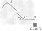 例:如图所示,AOB为一机械设备的简化示意图,我们可以把它看成杠杆(自重不计),已知AO= 2OB。固定D点,使OB处于水平位置,此时B端挂一重为40N的物体,要使杠杆不发生转动,至少需在A端施加F=____N的力,在图上画出此时力F的方向。