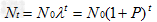2、种群增长率:一段时间内,种群增加的数量与该段时间起始数量之比。按照前面的假设,在t时间内种群增长率为