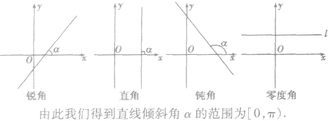 (2)规定当直线和x轴平行或重合时,它的倾斜角为0度。