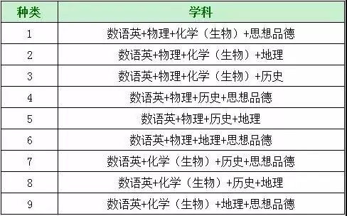 北京新中考改革实行“5选3”,从物理、生物(化学)、地理、历史、政治5个科目中选取3个科目来参加中考。其中物理和生化至少要选1个,地理、历史、政治中要选1到2门。所以这就形成了以下9种选课组合方式。