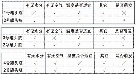 2好罐头瓶中的种子萌发, 1.3.4号罐头瓶中的种子不萌发。