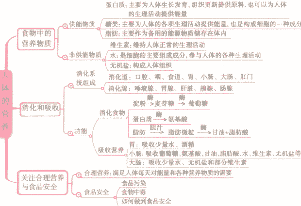人体的营养知识梳理: