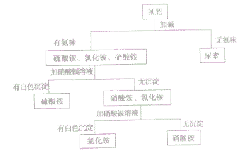 ②氮肥的简易鉴别氮肥中的氨水呈液态,碳酸氧钱有强烈的氨味,据此可直接将它们与其他氮肥相区别。其他常见氮肥可按下列步骤鉴别: