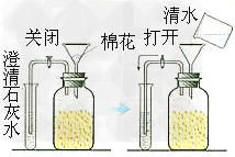 (2)瓶中是萌发的种子,开始时阀门关闭,过一段时间后,往瓶子里注入清水,打开阀门,使瓶内的气体进入试管,澄清石灰水变浑浊。