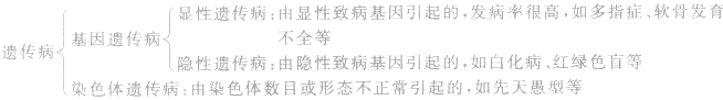 由于遗传物质发生改变而引起的疾病,叫作遗传病。其特点是致病基因可通过生殖细胞在家族中传递。遗传病一般具有家族性。