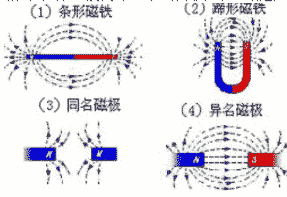 1. 条形磁铁和蹄形磁铁的磁感线: