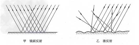 | 产生的结果 | 人在反射光线的范围内,看到物体很亮,不在反射光线的范围内,看到物体很暗 | 使人能从各个不同的方向看到物体 | |