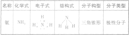 ,氨分子的结构为三角锥形,N原子位于锥顶,三个H原子位于锥底,键角107°18′,是极性分子。 分子结构为: