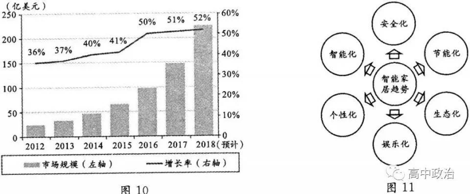 从经济生活角度,概括图10反映的我国智能家居市场的特点,并结合图11分析说明智能家居生产企业如何适应上述趋势。