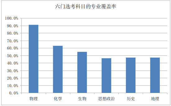 六门选考科目的专业覆盖率如下图所示: