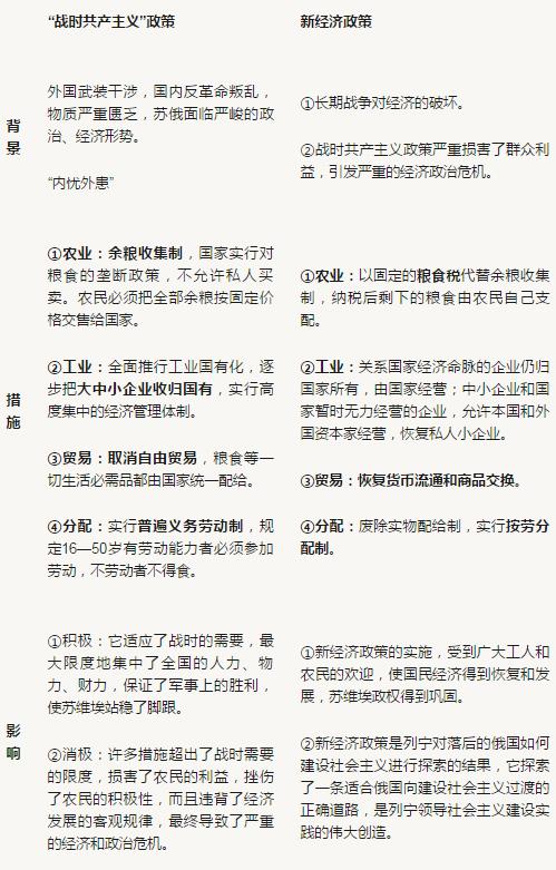 新经济政策实施的标志:1921年3月,俄共(布)第十次全国代表大会的召开标志着苏俄开始由战时共产主义政策向新经济政策过渡(通过"固定的粮食税取代余粮收集制")。
