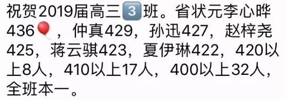 天一中学高三(3)班的李心晔也考了436分,其中语文134分,数学149+38分,外语110分,物理、化学双A+,“小高考”加5分。