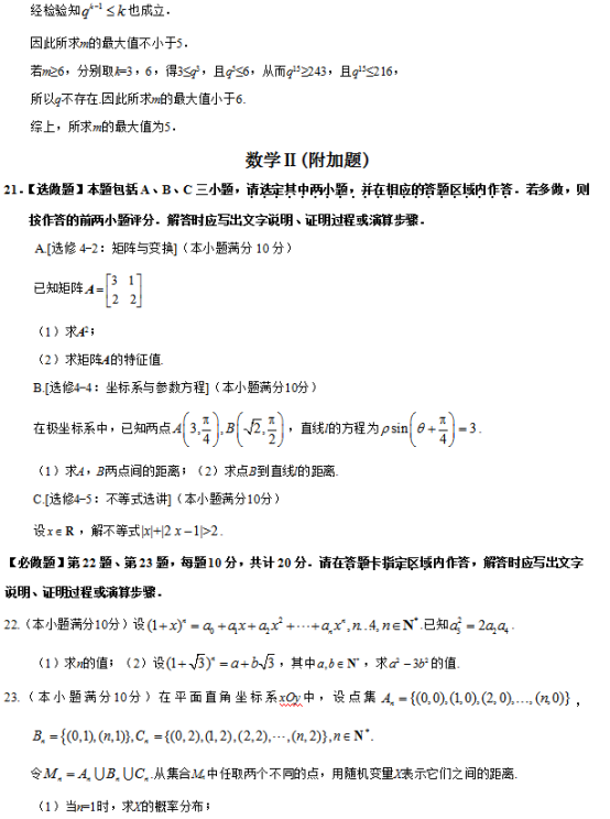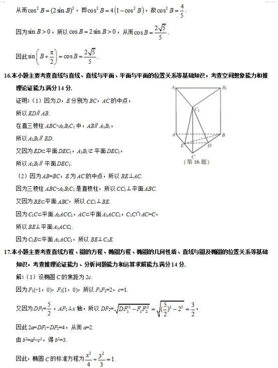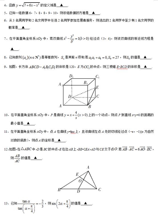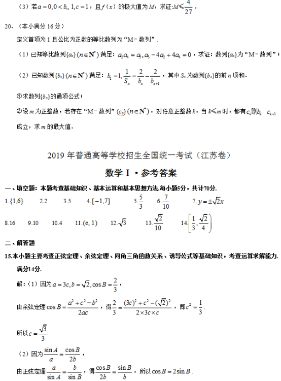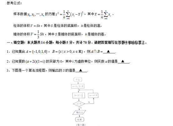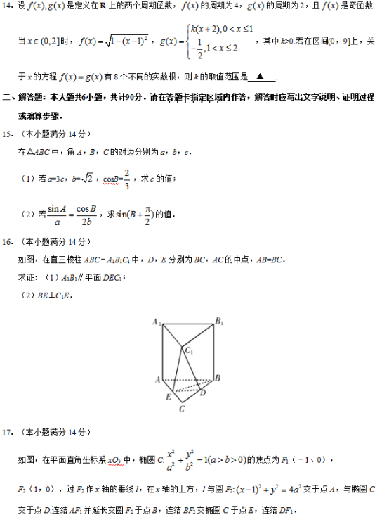 2019年普通高等学校招生全国统一考试(江苏卷)