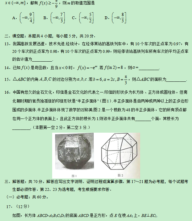 一、选择题:本题共12小题,每小题5分,共60分.在每小题给出的四个选项中,只有一项是符合题目要求的.