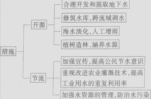 (1)总特点:中国水资源总量丰富,但人均水资源量很少。水资源短缺的原因: