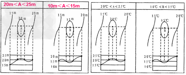 ②不同纬度海区,主要考虑寒、暖流的影响;其次近岸海区河流径流注入量的大小;高纬度海区还要考虑结、融冰的情况。