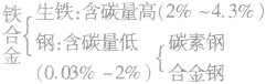 (2)钢是用量最大、用途最广的合金,按其化学成分可分为两大类:碳素钢和合金钢。