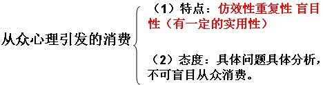 | 从众心理引发的消费 | 仿效性盲目性 | 健康合理的从众心理可带动某一产业的发展。比如:绿色消费带动绿色产业的发展 | 不健康、不合理的从众心理消费误导经济的良性发展,对个人生活不利 | 消费是否应该从众,要做具体分析。盲目从众是不可取的 |