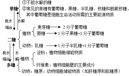 | 动物细胞 | 半乳糖(特有) | 乳糖:动物的乳汁中 | 糖原:主要在人和动物的肝脏和肌肉中 |