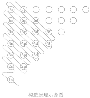 多电子原子的核外电子排布总是按照能量最低原理,由低能级逐步填充到高能级。绝大多数元素的原子核外电子的排布遵循下图所示的排布顺序,这种排布顺序被称为构造原理。