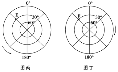 图丙中E点的地理坐标为(30°N,45°E),图丁中F点的地理坐标为(30°S,45°W)。