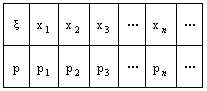 如果离散型随机变量ξ可能取的值为x1,x2,x3,…,xn,…,而ξ取每一个值xi(i=1,2,3,…)的概率P(ξ=xi)=pi,以表格的形式表示如下: