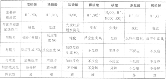 几种常见酸的比较: