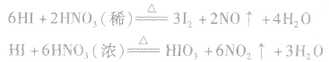 由铜与硝酸反应的化学方程式知,浓硝酸被还原为NO2,氮的化合价由+5→+4;而稀硝酸被还原为NO,氮的化合价由+5→+2,由此得出稀硝酸具有更强的氧化能力的结论是错误的。因为氧化剂氧化能力的强弱取决于得电子能力的强弱,而不是本身被还原的程度。实验证明,硝酸越浓,得电子的能力越强,因而其氧化能力越强。如稀硝酸能将HI氧化为I2,而浓硝酸可将HI氧化为HIO3。