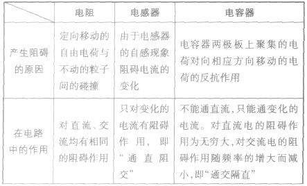电感和电容对交变电流的阻碍作用大小不但与电感、电容本身有关,还跟交流的频率有关。