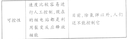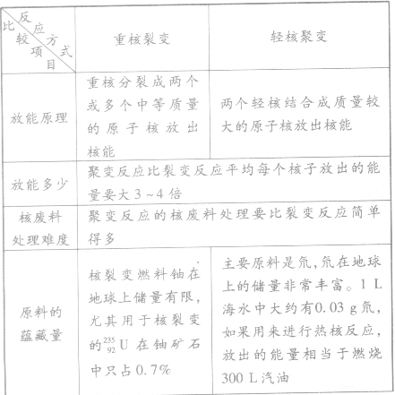 ②可控热核反应与裂变相比的优点:释放能量大;无放射性物质;燃料丰富。