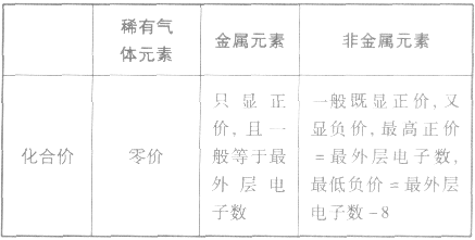 元素显正价还是显负价及其数值大小与原子的最外层电子数密切相关。其一般规律可归纳如下表: