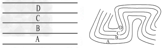 以下图为例,图中A--D表示岩层,且岩层年龄A>B>C>D: