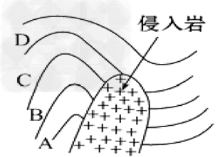 情况五:若地层中有侵入岩存在,说明围岩形成之后又发生了岩浆活动,岩浆活动晚于围岩形成时代。