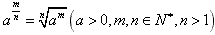 一般地,如果xn=a,那么x叫做a的n次方根,其中n>1,且n∈N*。