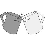 下图是两个水杯、两只蘑菇,请设计一个场景,水杯和蘑菇是场景中的主体,你能想像出这个场景是什么样的吗?越奇特越好。