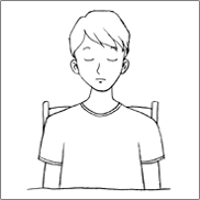 1、坐在凳子或椅子上,双肩自然下垂,边放松全身肌肉边闭上双眼,两手平放在大腿上。