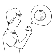 1、凝视手中的橘子(或其他物品),反复、仔细地观察它的形状、颜色、纹理脉络;然后用手触摸它的表面质地,看是光滑还是粗糙,再闻闻它有什么气味。
