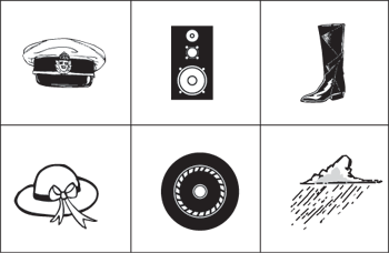 3、下面的图中有6个童话中出现的物品,请在1分30秒内记住它们在图中的位置,然后翻到页尾,仅凭记忆请这些物品对号入座。(提示:要记住多幅图像和它们的位置,乍看很难,其实不然。在初做这类题时,设法把每幅图像拟人化,然后将图像串成一个生动的故事,记住它们就很容易了。照相记忆能力较强时,看到的每幅图像都会自动活起来,在脑海中组成栩栩如生的故事场景。)
