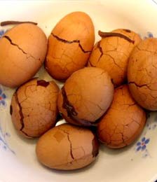 6.五香茶叶蛋(茶叶+鸡蛋):浓茶中含有较多的单宁酸,单宁酸能使物质中的蛋白质变成不易消化的凝固物质,影响人体对蛋白质的吸收利用。