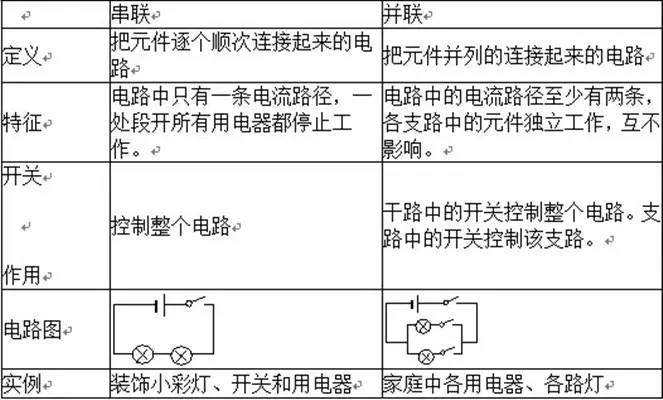 ①电流分析法:在识别电路时,电流:电源正极→各用电器→电源负极,若途中不分流用电器串联;若电流在某一处分流,每条支路只有一个用电器,这些用电器并联;若每条支路不只一个用电器,这时电路有串有并,叫混联电路。