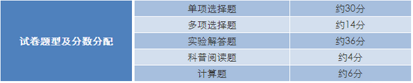 (2)题型调整:把“实验选择题”拆到“单项选择题”和“多项选择题”中。试卷题型及分数分配见下表: